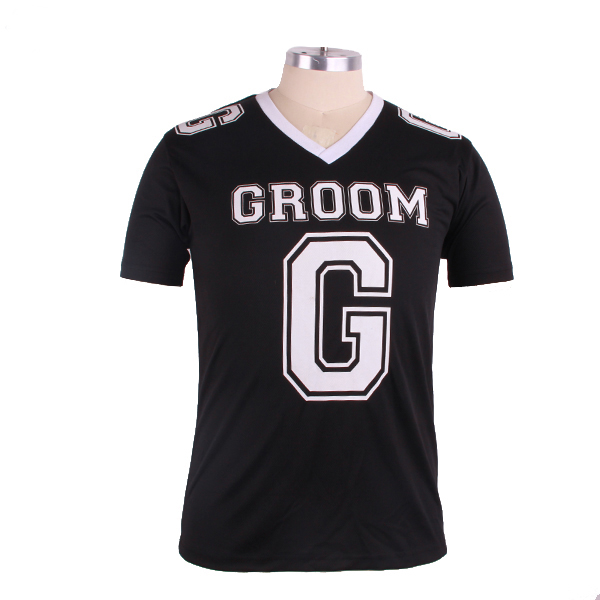 订制男士全涤V领印花T恤衫篮球运动服套头短袖 |