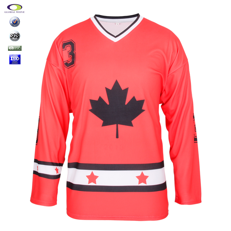 100%涤纶冰球枫叶双面印花球服长袖V领衫