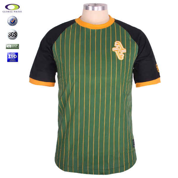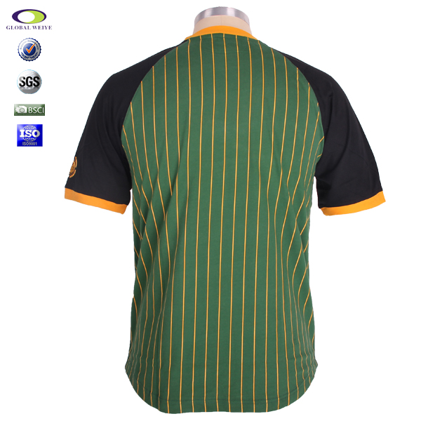 订制男士全涤圆领橙青条纹刺绣T恤衫短袖运动服