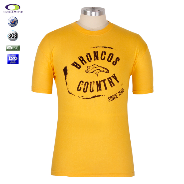 男士全棉圆领黄色印花T恤衫短袖运动服定制 |