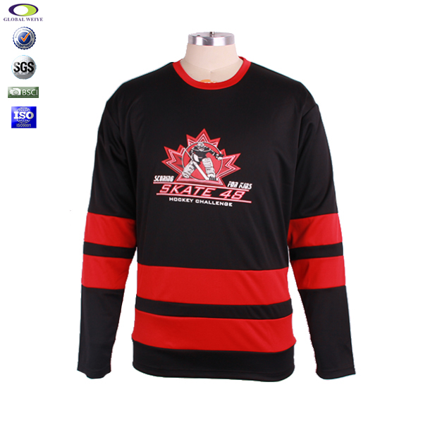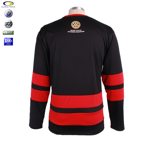 黑色100%涤纶长袖冰球印花球服运动衫 |