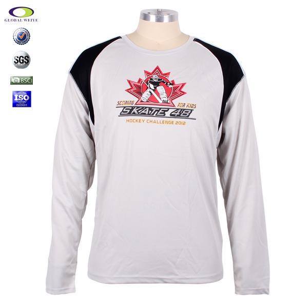 灰色100%涤纶网眼长袖冰球印花球服运动衫