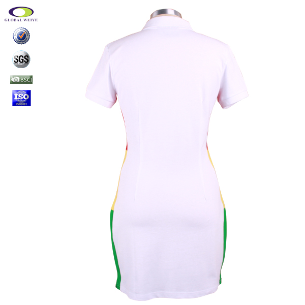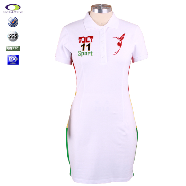 定制女士polo衫白色刺绣多纽扣翻领长身裙T恤衫 |