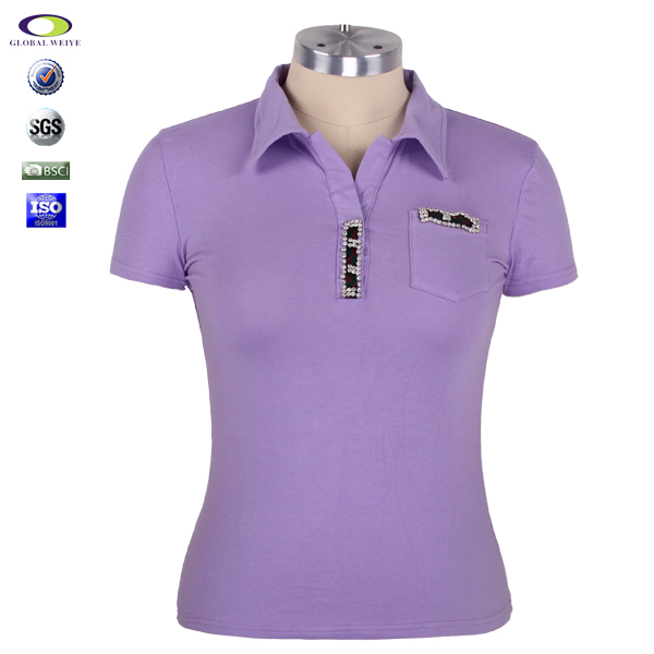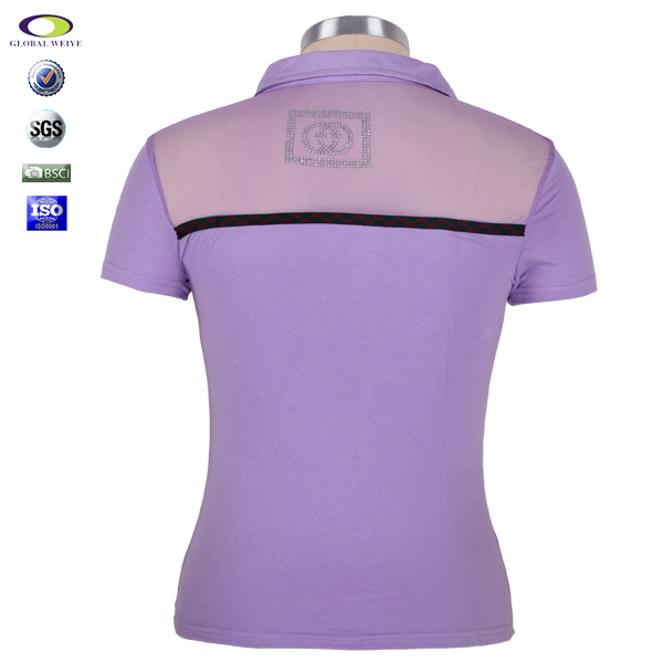 定制女士紫色背后镂空烫钻polo衫翻领T恤衫 |