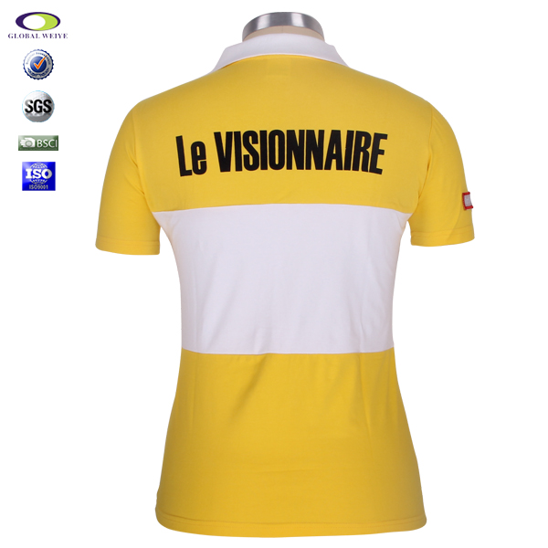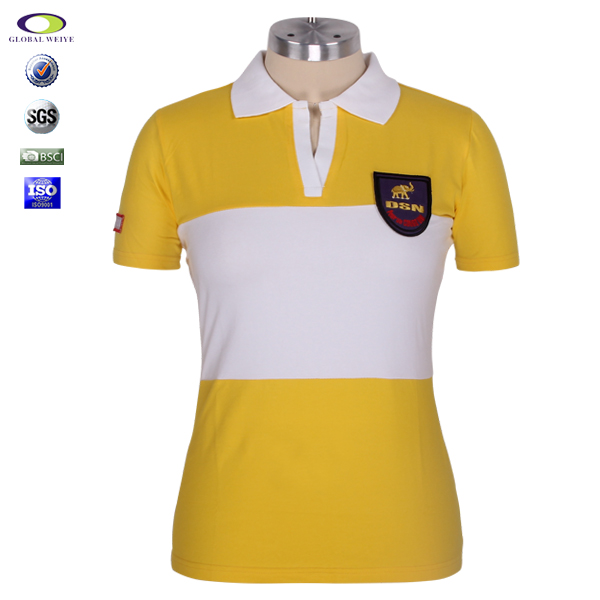 100%棉女士黄白拼接绣章polo衫翻领短袖 |