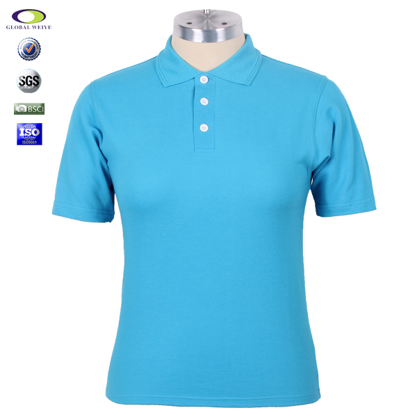 100%棉女士浅蓝色空白polo衫翻领短袖T恤衫 |
