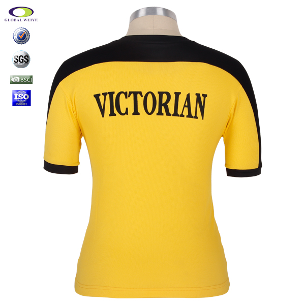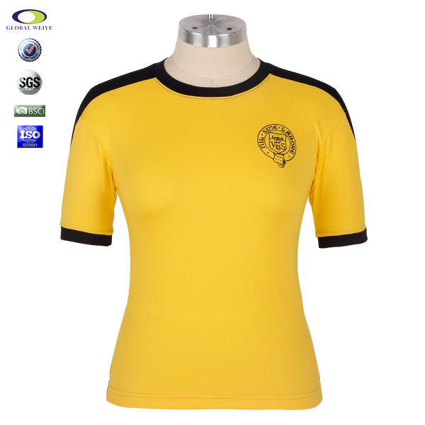 女士黑黄拼接印花圆领T恤衫定制 |