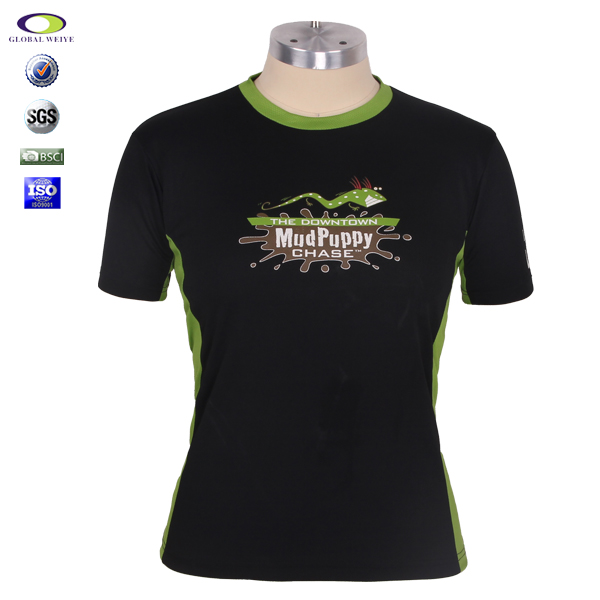 女士绿领黑色短袖丝网印logoT恤衫定制 |