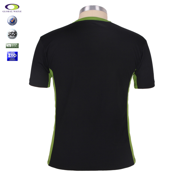 女士绿领黑色短袖丝网印logoT恤衫,采用绿领撞色设计,突显时尚魅力,前幅高质量丝网印logo,专业纸样 标准裁剪,高性价网眼布 速干 坚牢耐用、抗皱免烫、不变形、热塑性强、环保染色 经典短袖时尚圆领款式 。