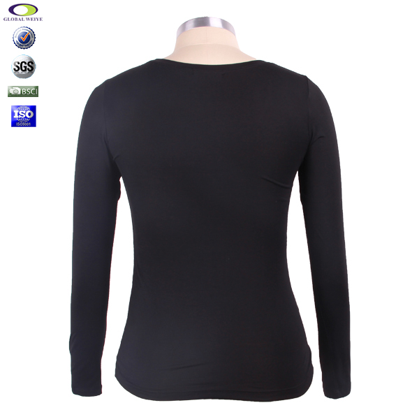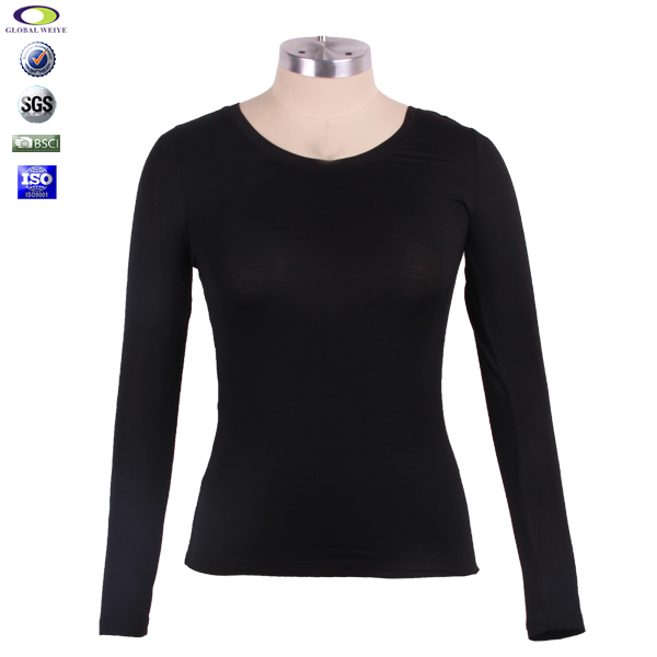 定制女士黑色圆领长袖T恤衫空白修身打底衫 |