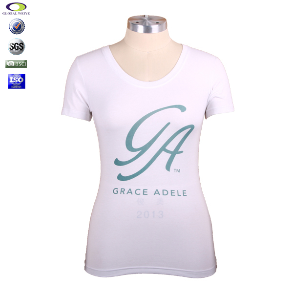 定制女士白色弹性修身印花圆领短袖T恤衫 |