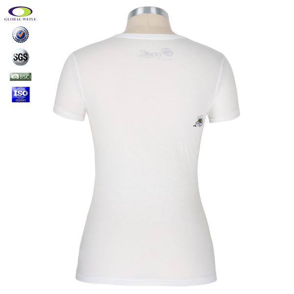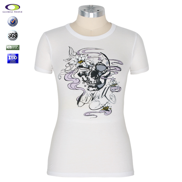 女士白色修身印花圆领短袖T恤衫定制