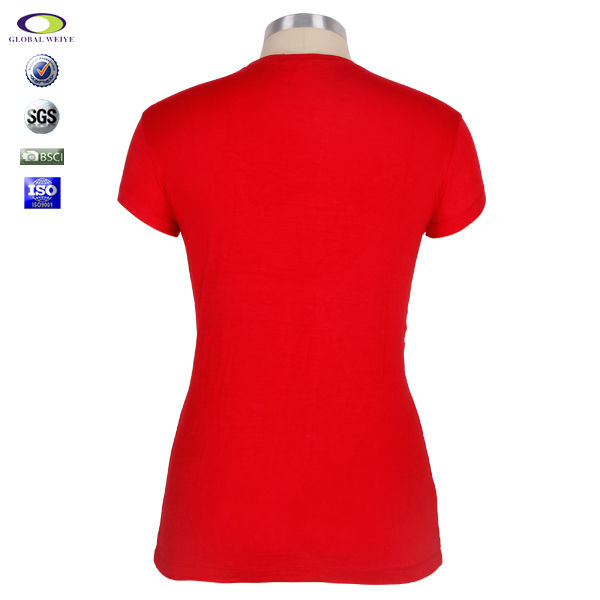 女士中国红短袖T恤衫,前幅高质量丝网印logo,专业纸样 标准裁剪,高性价混纺面料 、弹性好,耐磨,不会轻易缩水,环保染色 经典短袖时尚圆领款式 。