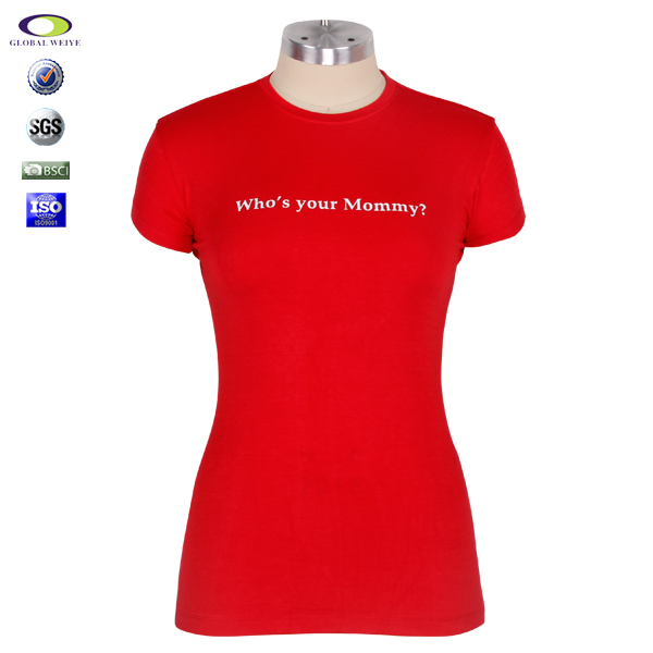 中国红女士印花圆领短袖T恤衫定制