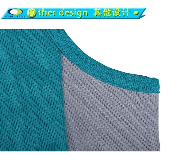 This is cyan and white cut mesh tanks top 100% polyester ,This is one of our customers in our production, we are factories, if you have any design, you can find us to produce. If you don't want your design to be put online, please tell me that we will not put your product here. All the clothes here are put here just to let you know that we have made many models and we have the ability to make the products you want.